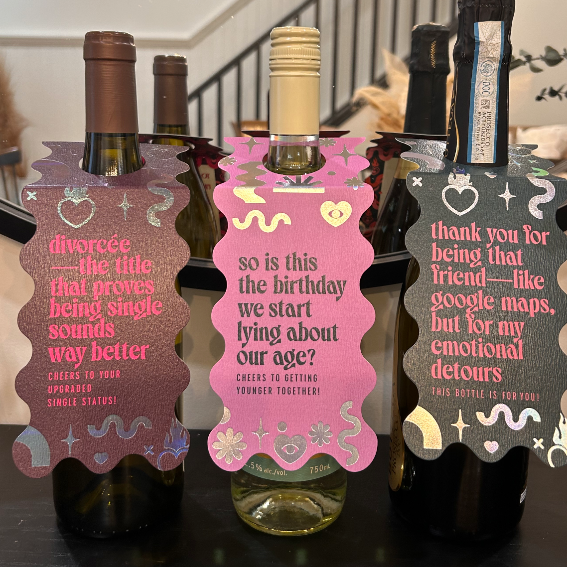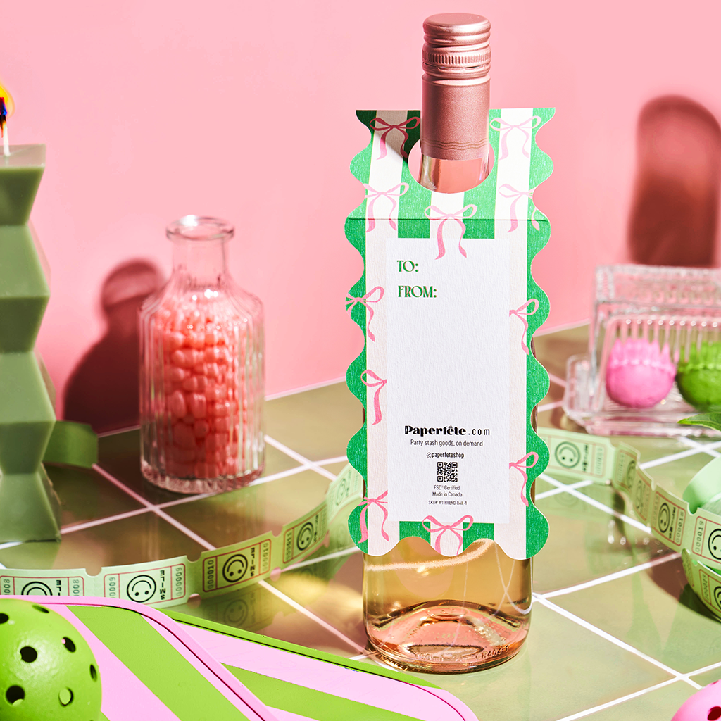 Real talk, real luxe — printed on premium textured stock with gleaming foils. Double-sided with space for a note, this is friendship celebrated the paperfête way.