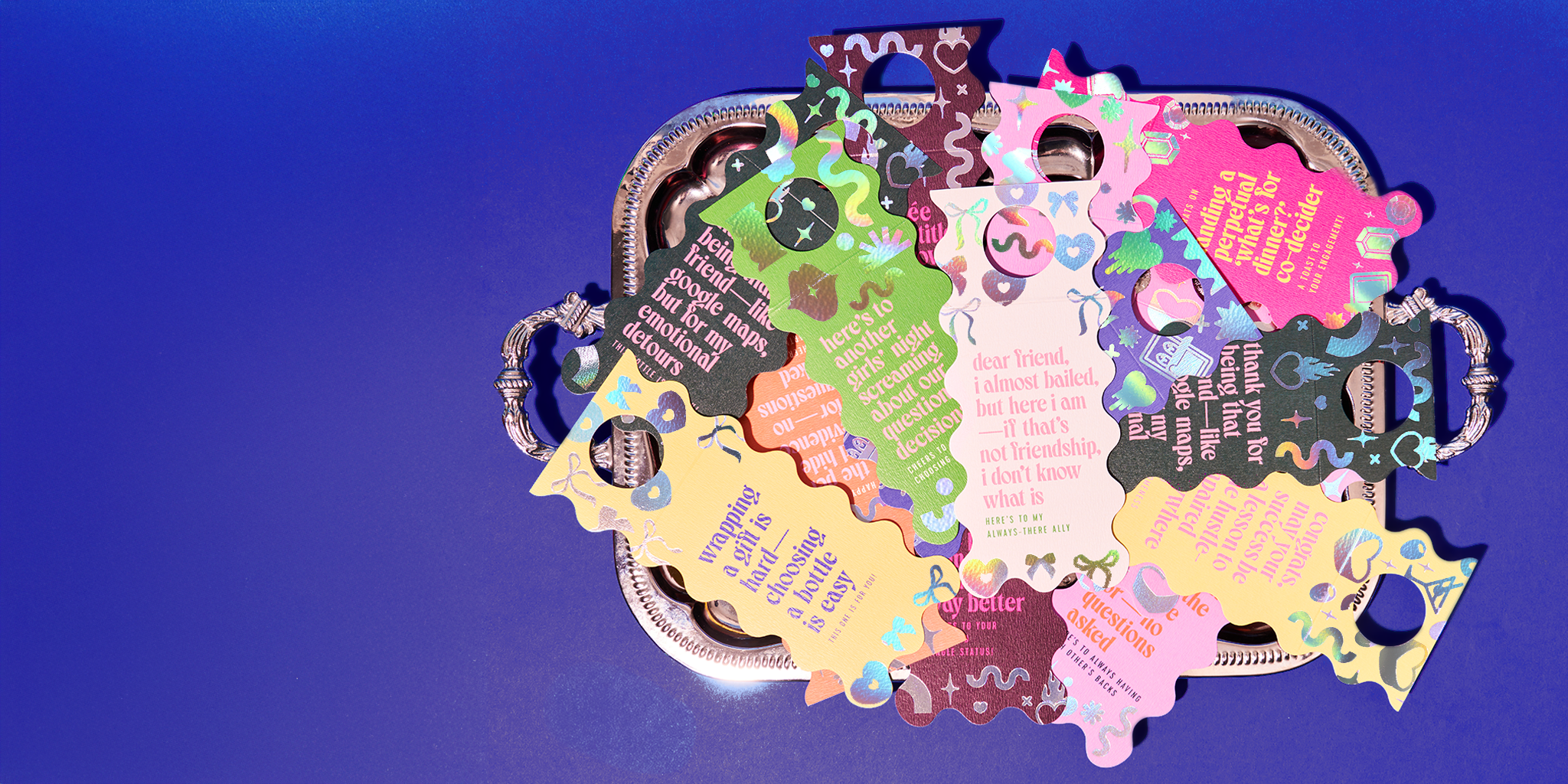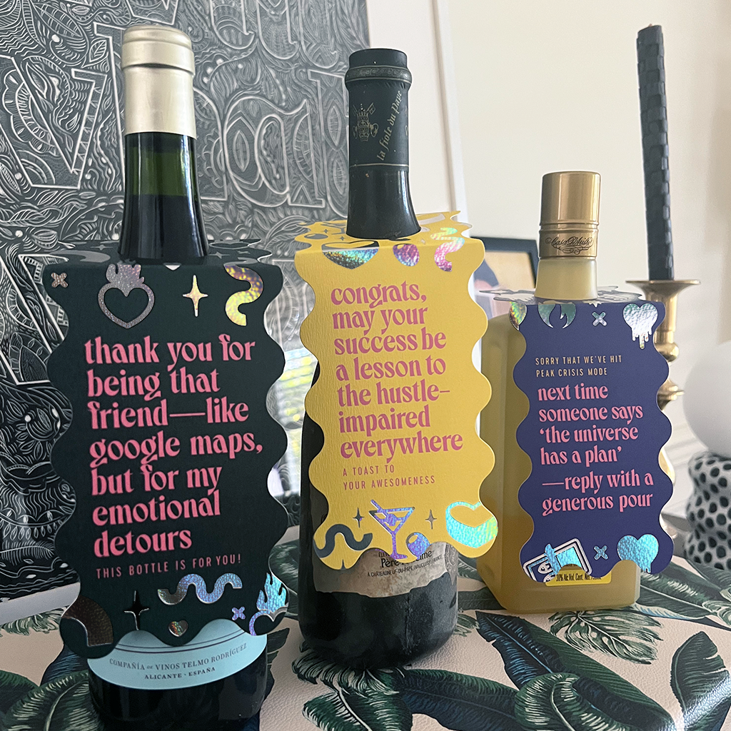 Real talk, real luxe — printed on premium textured stock with gleaming foils. Double-sided with space for a note, this is friendship celebrated the paperfête way.