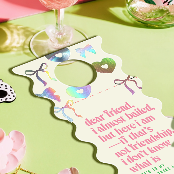 We don’t do flimsy. Our goods are printed on premium 148gm stock with holographic foils that catch the light (and everyone’s attention). From the feel in your hand to the finish, every detail is designed to be extra.