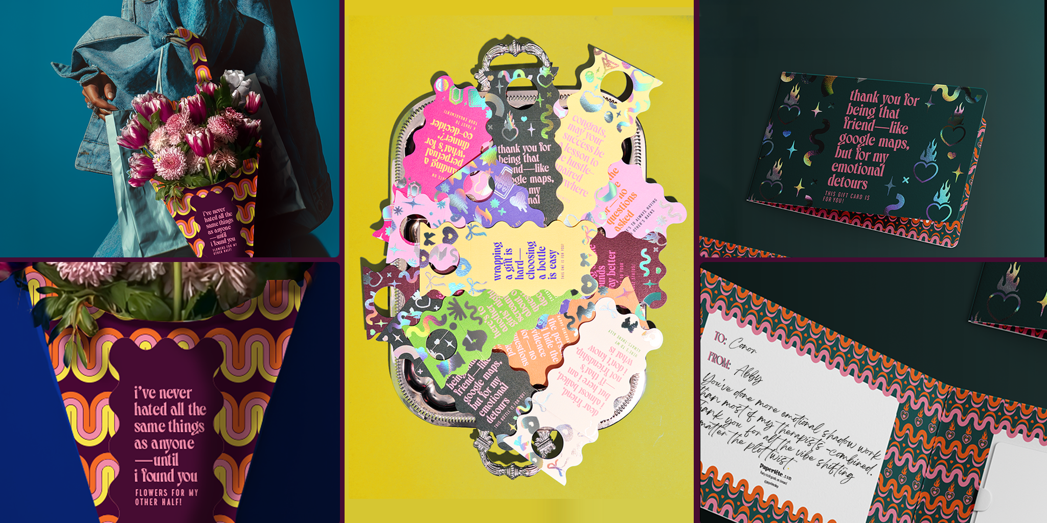 Célébrez les anniversaires, les ruptures et tout ce qui se passe entre les deux. Nous avons des papiers de fête pour toutes les occasions, ou même pour aucune. Pas de jurons, pas de dictons ringards, juste des paroles sincères, sans filtre. Nous vous aidons à célébrer quoi que ce soit, dès que l'occasion se présente.