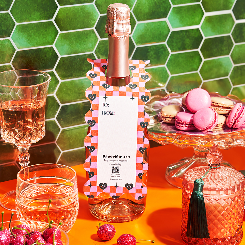 On arrange tous un peu le chiffre, mais au moins on est honnêtes. Imprimé sur un papier épais de luxe avec une feuille holographique qui brille plus fort que vos bougies. Recto-verso avec de la place pour un petit mot, car ici, il n'y a que le vin qui vieillit.