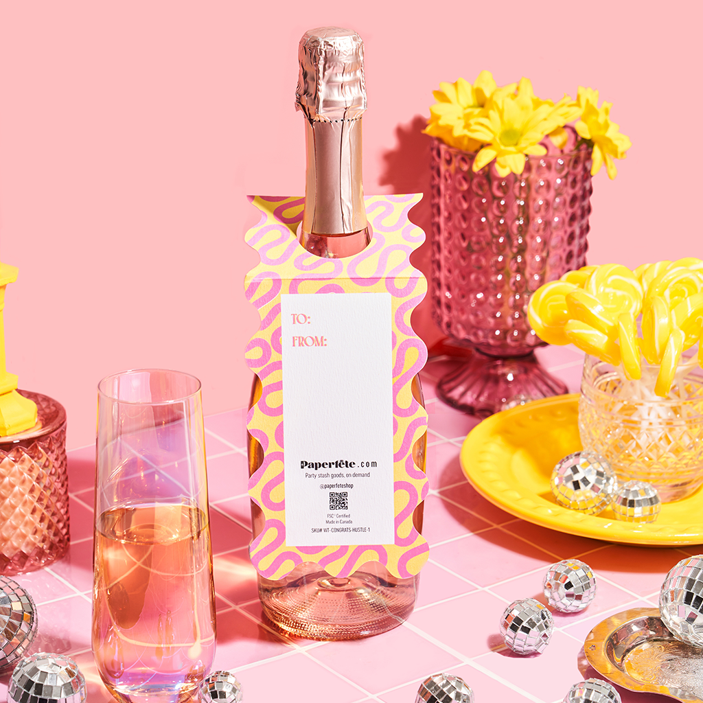 Les grandes victoires méritent des toasts audacieux. Avec un espace pour un mot personnel, ce tag est fait pour trinquer et se vanter.