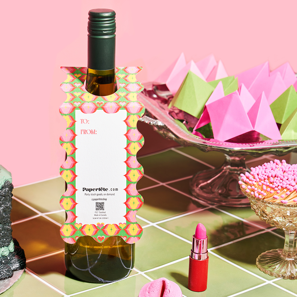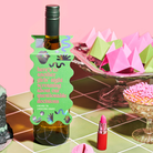 Papier luxueux. Feuille holographique. Cette étiquette apporte le chaos, avec de la place pour votre toast personnalisé au verso. Apportez du vin et de l'ambiance à votre soirée entre filles.
