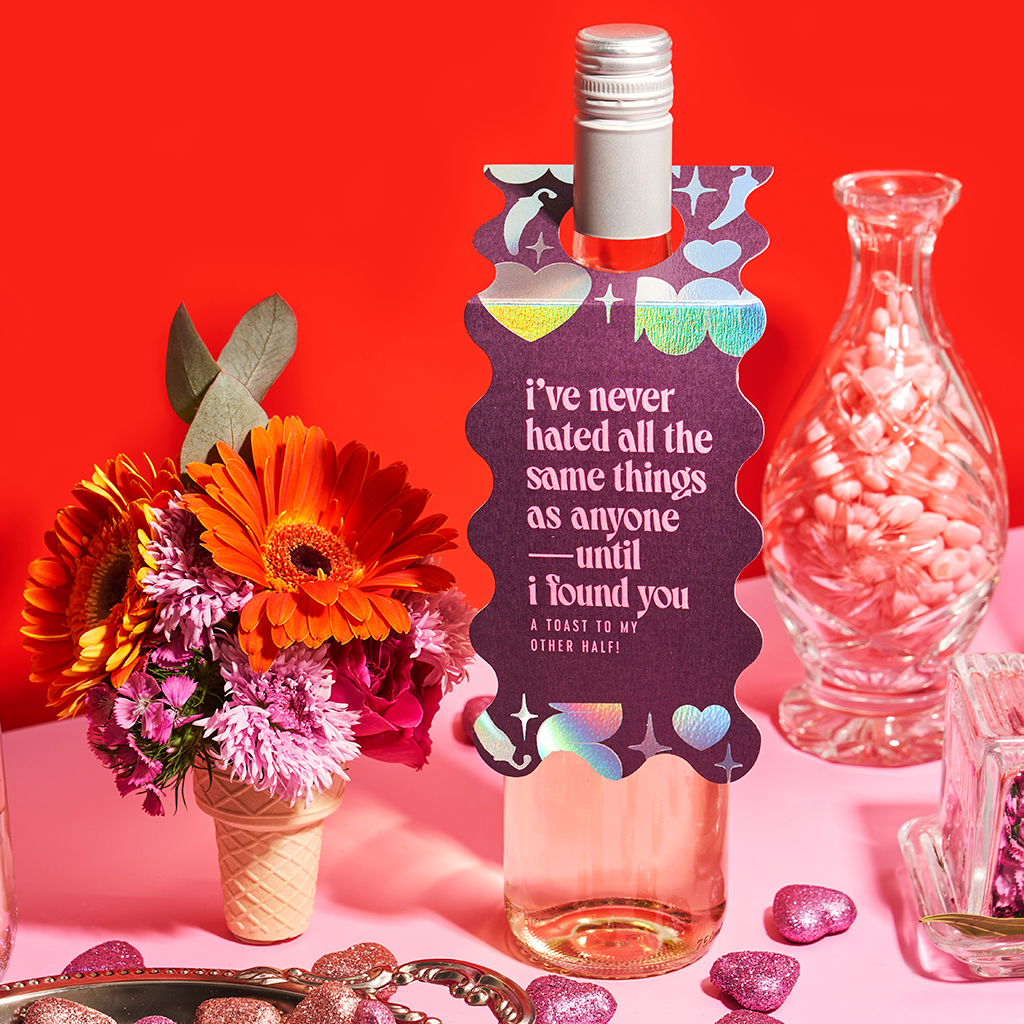 Imprimé sur du papier épais avec une luxueuse finition métallisée, Cette étiquette prouve que le romantisme mérite mieux que l'ordinaire. Offrez-en une à votre moitié (votre meilleur(e) ami(e) ou votre chéri(e)) pour votre prochain anniversaire ou tout simplement pour le plaisir.